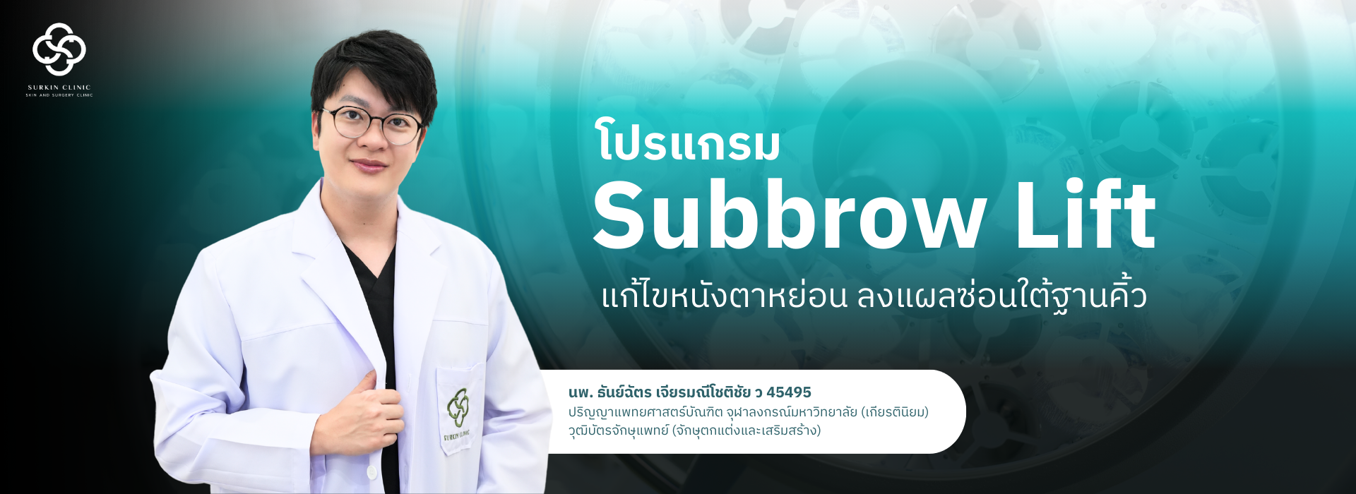 Subbrow lift คือ การผ่าตัดศัลยกรรมแก้ไขหนังตาหย่อน โดยลงแผลซ่อนใต้ฐานคิ้ว เป็นการผ่าตัดแก้ไขความหย่อน ตัดผิวหนังส่วนเกินบริเวณใต้คิ้วออก เพื่อกระชับหนังตา เผยให้เห็นชั้นตาธรรมชาติสวยเมื่อย้อนวัย โดยเฉพาะบุคคลที่มีปัญหาความหย่อน หรือมีหนังส่วนเกิน บริเวณหางตา หรือที่เรียกว่าหางตาตก หนังทับชั้นตาเดิม การทำ subbrow lift ไม่ใช่การเปลี่ยนตำแหน่งคิ้วจึงไม่สามารถทำให้คิ้วสูงขึ้น หรือยกคิ้วขึ้นได้ subbrow lift เป็นวิธีช่วยยกหนังตาบนให้ดูสดใสมากขึ้น โดยไม่จำเป็นต้องดึงคิ้วทั้งหมดขึ้นด้านบน
