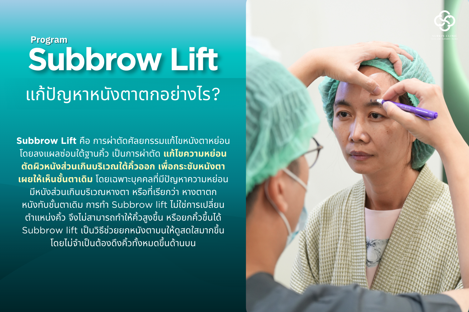Subbrow lift คือ การผ่าตัดศัลยกรรมแก้ไขหนังตาหย่อน